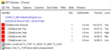 Response Time Tracker is a performance measurement platform which may be used in either a local or distributed environment. Software developers use the RTT observer API, library to precisely instrument the target source code. RTT performance measurements are designed to have low overhead.